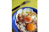 Ingredients: Directions: Melt 2 oz (50 grams) of the butter in a frying pan and break in one egg at a time. Season lightly with salt and fry for a few minutes. Transfer to a warm serving dish. Melt the remaining butter in the same pan. When it starts to brown, sprinkle in the vinegar, add the sage and parsley and cook for a few minutes, then pour the sauce over the eggs. Serves 4. That's it!