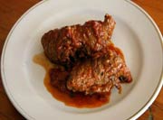 Stir in chile flakes, tomatoes, and bay leaf, and then return beef rolls to pot.